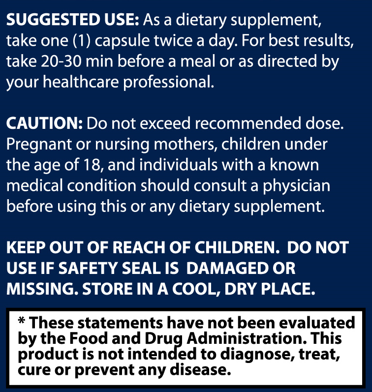 These statements have not been evaluated by the Food and Drug Administration. This Product is not intended to diagnose, treat, cure or prevent any disease.