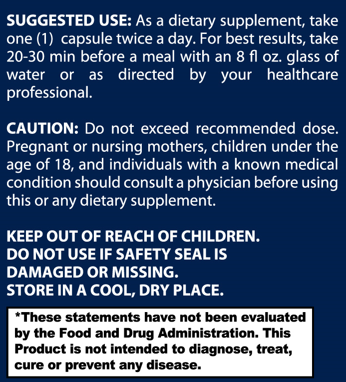 These statements have not been evaluated by the Food and Drug Administration. This Product is not intended to diagnose, treat, cure or prevent any disease.