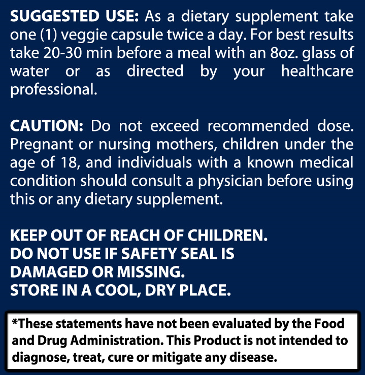 These statements have not been evaluated by the Food and Drug Administration. This Product is not intended to diagnose, treat, cure or prevent any disease.