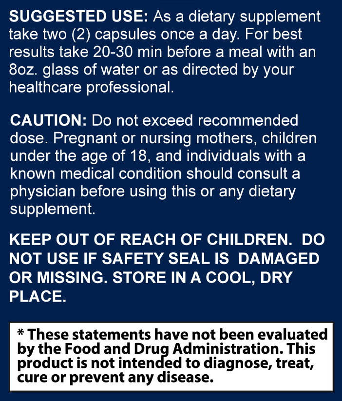 These statements have not been evaluated by the Food and Drug Administration. This Product is not intended to diagnose, treat, cure or prevent any disease.