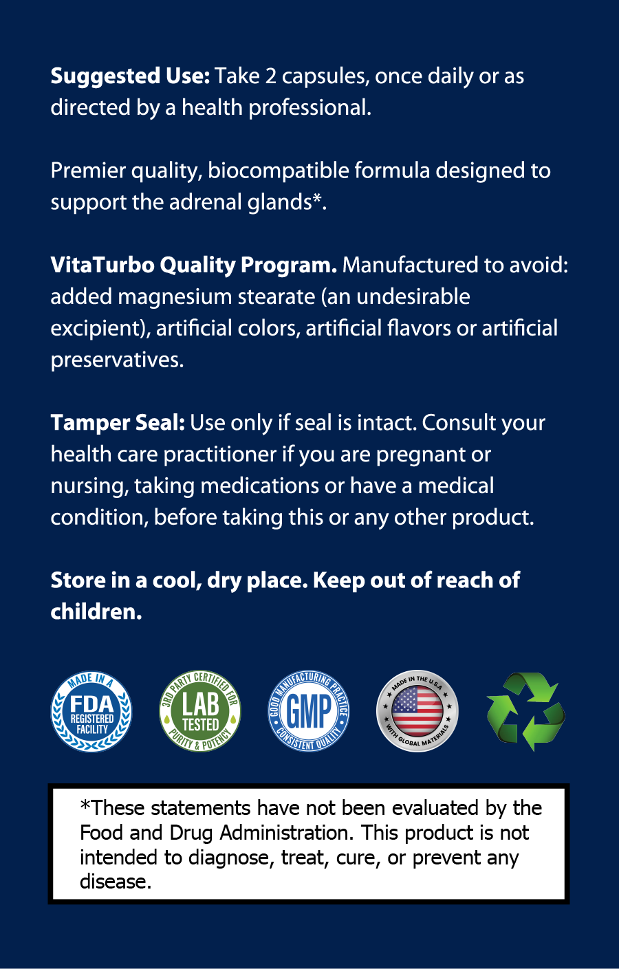 These statements have not been evaluated by the Food and Drug Administration. This Product is not intended to diagnose, treat, cure or prevent any disease.