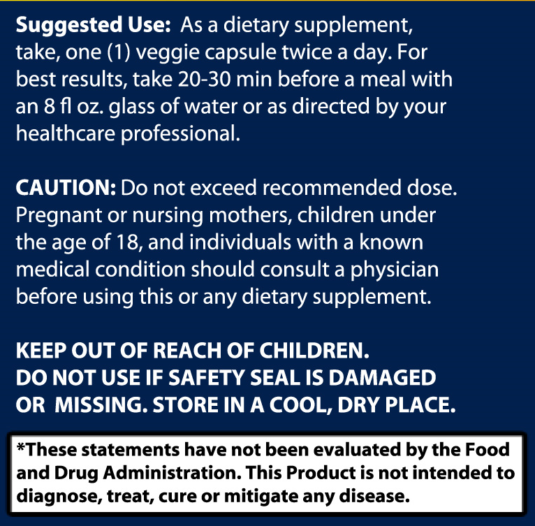 These statements have not been evaluated by the Food and Drug Administration. This Product is not intended to diagnose, treat, cure or prevent any disease.