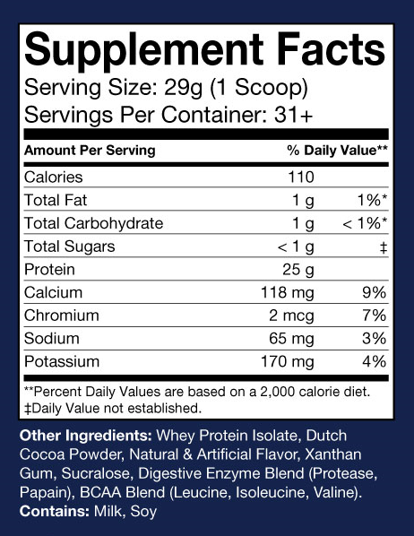 Isolate Whey Protein delivers a rich, velvety chocolate taste that turns every shake into a satisfying treat. Supports rapid muscle recovery to get you back in the gym faster. Helps build and maintain lean muscle mass for stronger performance and definition.