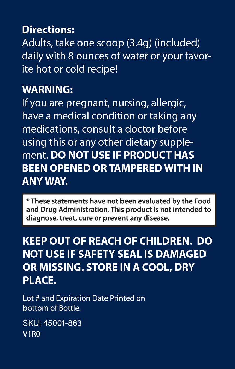 These statements have not been evaluated by the Food and Drug Administration. This Product is not intended to diagnose, treat, cure or prevent any disease.