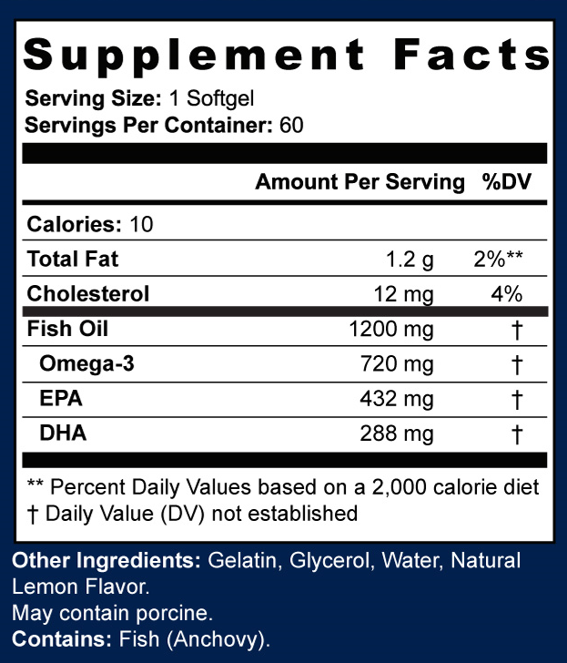 Omega-3 Fish Oil supports overall heart health and promotes cardiovascular wellness. It is designed to help maintain healthy brain function and cognitive clarity. This supplement aids in supporting joint comfort and flexibility, helping you stay active throughout the day.