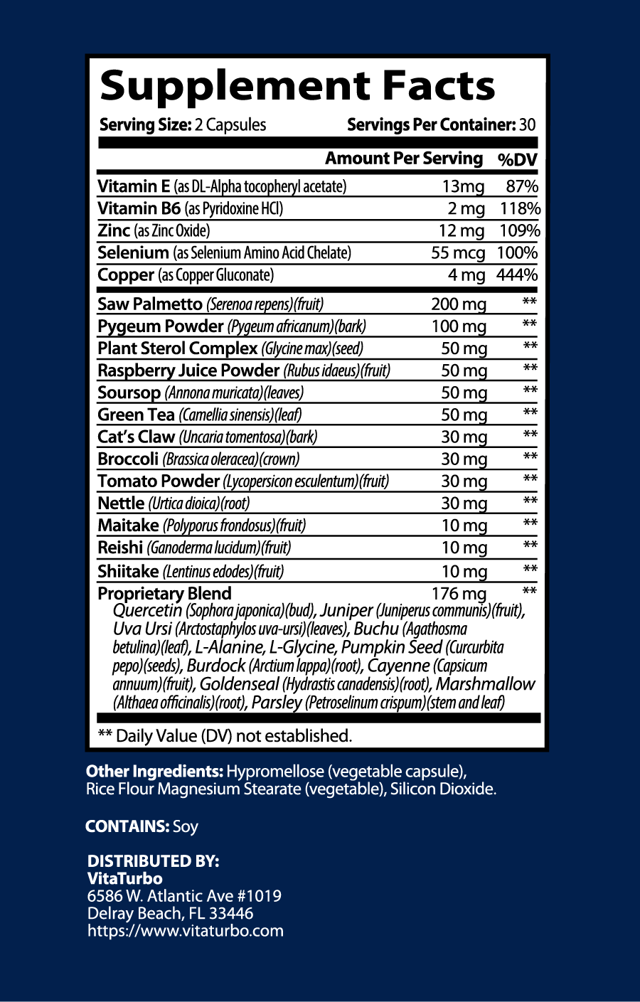 A: Prostate Formula supplements are generally safe for most individuals, but some may experience mild side effects such as digestive discomfort, headaches, or dizziness. It’s important to start with a smaller dose to assess tolerance and consult with a healthcare provider if you have any concerns.