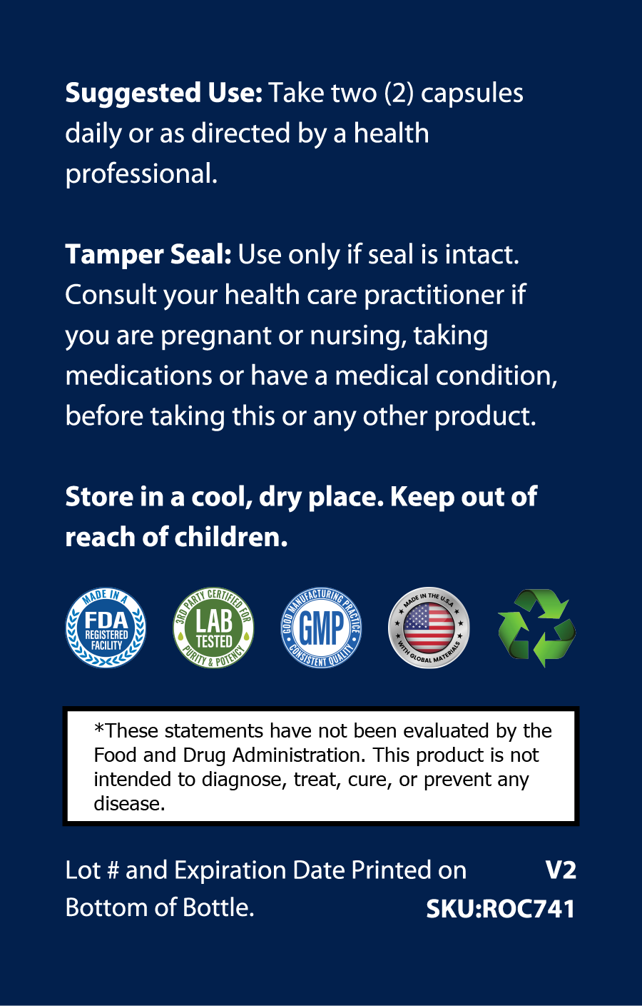 These statements have not been evaluated by the Food and Drug Administration. This Product is not intended to diagnose, treat, cure or prevent any disease.